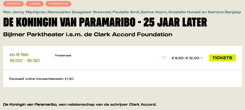 Wie recent aanwezig was bij het evenement “De koningin van Paramaribo – 25 jaar later” in het Bijlmer Parktheater, voelde het direct: Clark is een levende kracht. Het theater zat vol. Jong en oud. Eerste lezers en nieuwe generaties. Alsof hij zelf nog tussen ons liep, glimlachend, scherp observerend, inspirerend. Een nalatenschap met impact.
